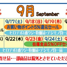 9/17~9/25の9日間、ヒロデポセール開催!!