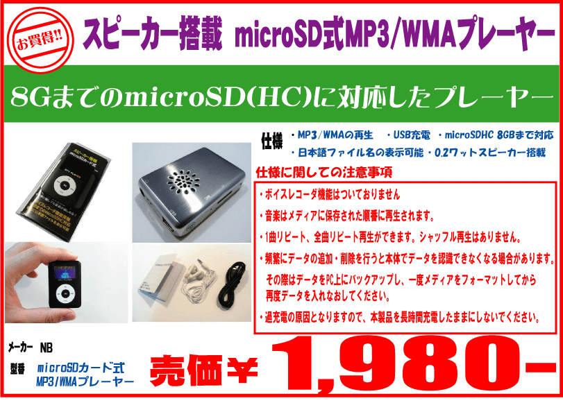 以前からお問い合わせ頂いた、MP3プレーヤが入荷しました。