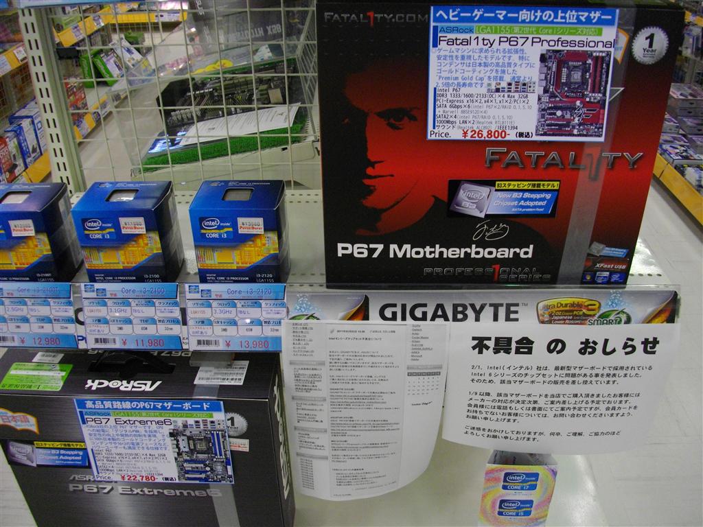 2011年03月06日 "Sandy Bridge"対応マザーが再入荷!まずはASRockから! SATAIIポートの不具合を解消した"B3"リビジョン搭載のLGA1155マザーが緊急入荷!今回入荷してきたのは1月31日の記事でもご紹介したFatal1ty P67 ProfessionalとP67 Extreme6(売り切れ)のASRock製の上位マザー2機種で、それぞれ1台のみの入荷となっております。なお、他メーカーのB3リビジョン搭載マザーも今月の中旬から下旬にかけて再入荷予定となっておりますので、「〇〇(メーカー名)待ち」という方はもう少々お待ち下さい。 < 前の記事次の記事 >