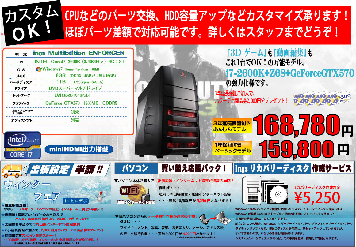 オーダーPC工賃の半額キャンペーンも実施しております!