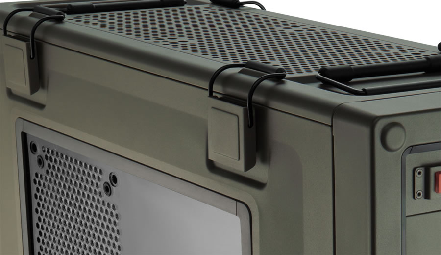 2012年08月06日 ミリタリー調のミドルタワーケース CORSAIRVengeance Series C70(CC-9011016-WW/ガンメタルブラック)「ミリタリーをイメージした」というコルセア社のミドルタワーケースです。リセットスイッチの防護カバーやサイドパネルのロック部分(「弾薬箱のイメージ」との事)など、細部まで凝ったデザインが施されています。現在店頭にて展示中のモデルは画像一番上の「ガンメタルブラック」のみ、注目の「ミリタリーグリーン」に関しましては現在のところ8月中旬入荷予定になっております。「グリーン一択」という方はもう少々お待ちください。メーカーさんの紹介動画はコチラ↓(音声も再生されます)。 < 前の記事次の記事 >