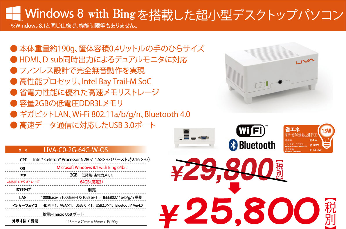 超小型PC「LIVA」値下げ!! お買い得です!!!