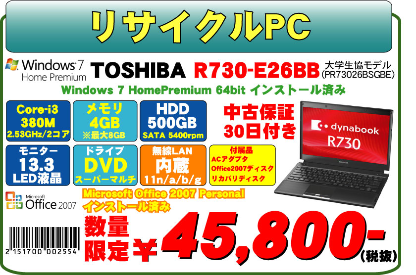 ■CPU:インテル Core-i3 380M(2.53GHz 2コア)
