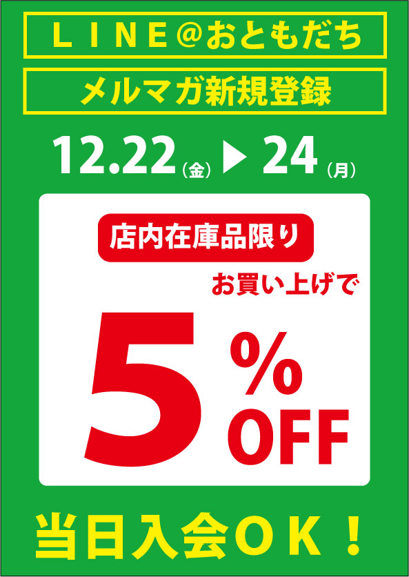 レジにて5%OFFとさせて頂きます。