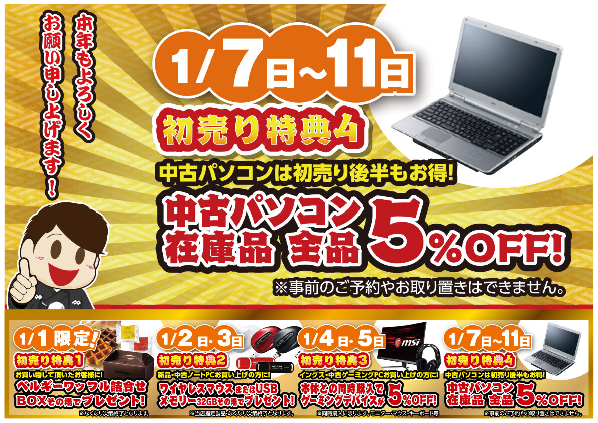 中古PCを購入するなら11日まで!