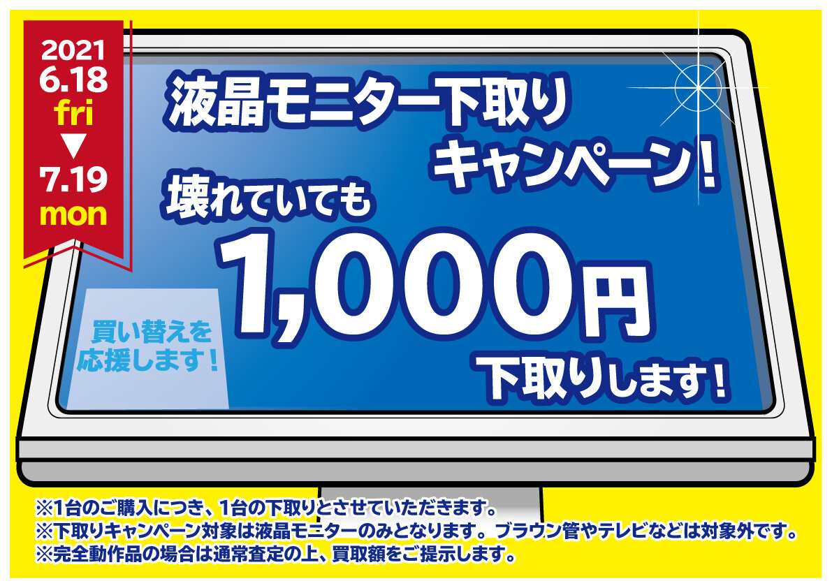 今なら液晶モニター下取りキャンペーンも7月19日まで実施中です。