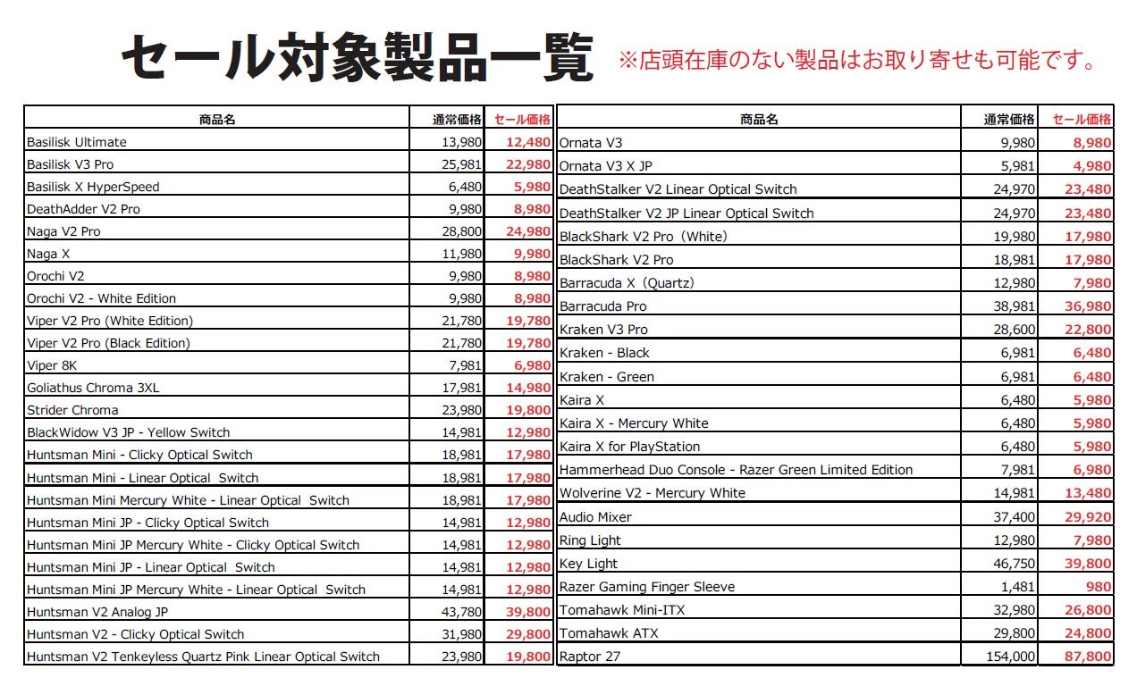 期間限定RAZER製品セール!!6/8まで!