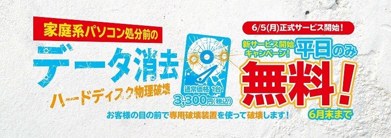 6/5(月)よりデータ消去サービスがスタート!