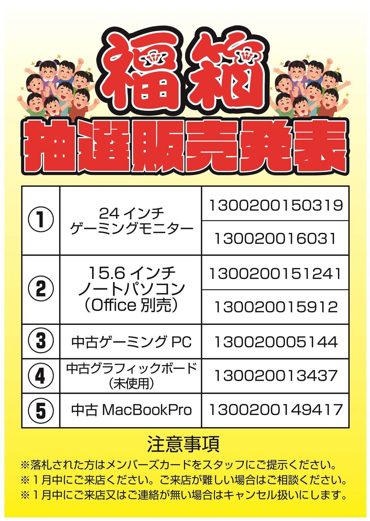 当選された方はメンバーズカードをご持参して1月中にご来店ください。