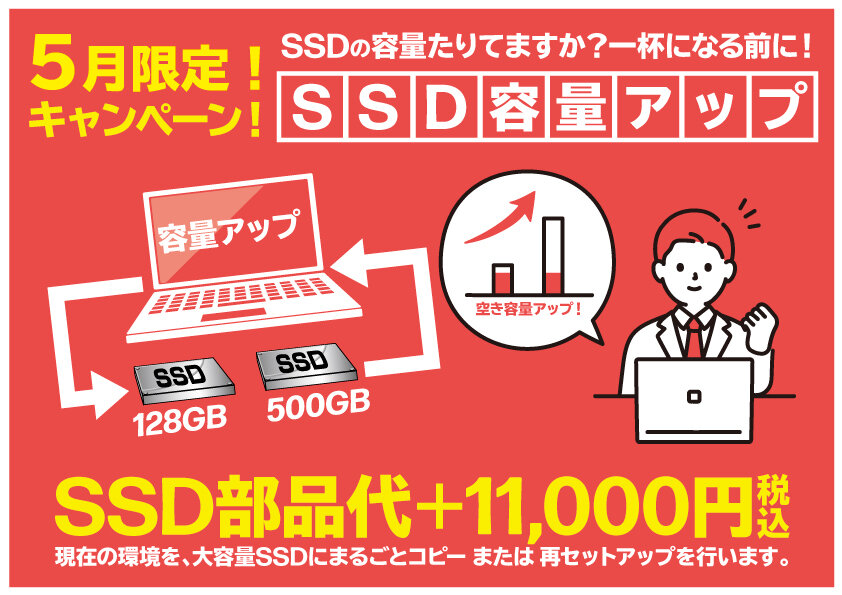 通常16500円のSSDコピー(クローン)作業費が11,000円!!