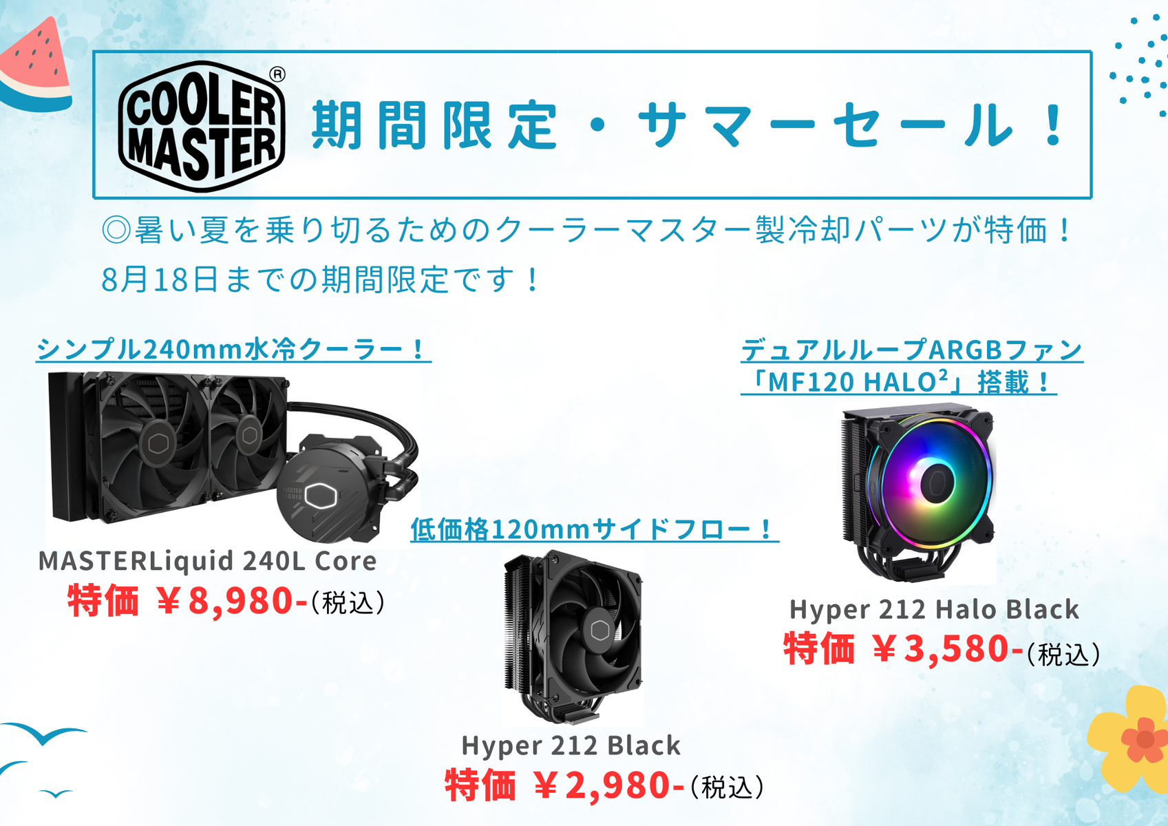 先週末よりクーラーマスターのCPUクーラー3アイテムがお買い得なセールを開催中です!