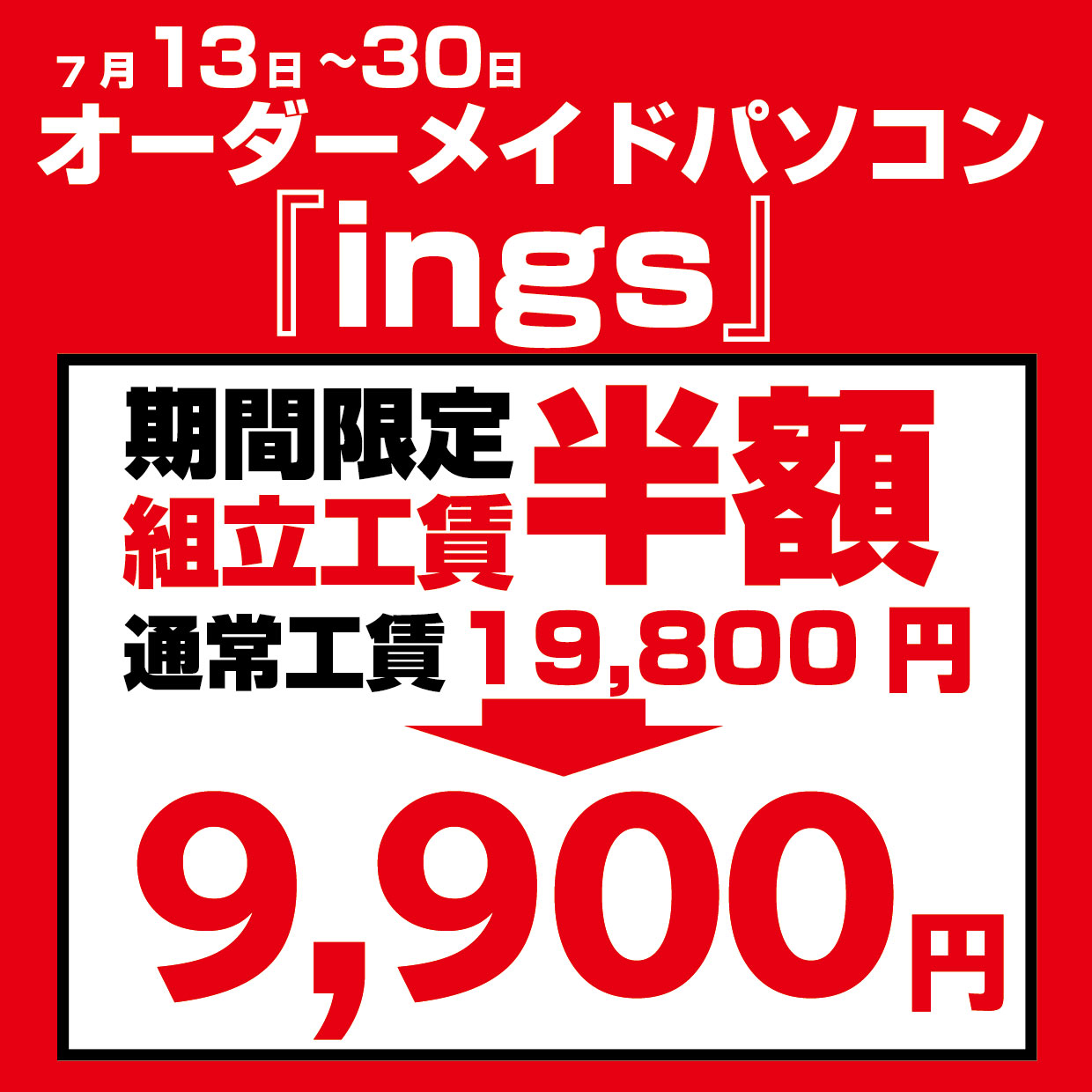 今回のセールは8月18日までの期間限定になります。さらに今月中ならオーダーメイドPCの工賃&Windowsインストール料半額のキャンペーン割引も適用可能ですので、ぜひこの機会をご利用ください。
