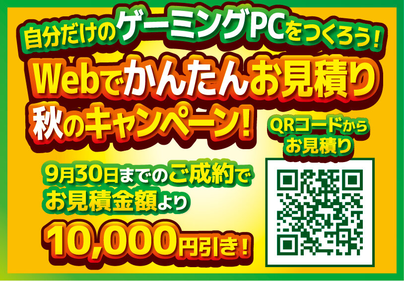9月中にオーダーメイドパソコンのお見積り頂き、ご成約された方はお見積りから10,000円割引!!