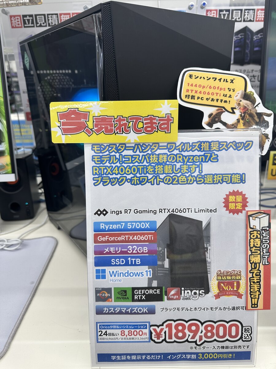 Intel i7搭載ゲーミングPC!こちらはブラックモデルのみ直ぐに持ち帰りできます!