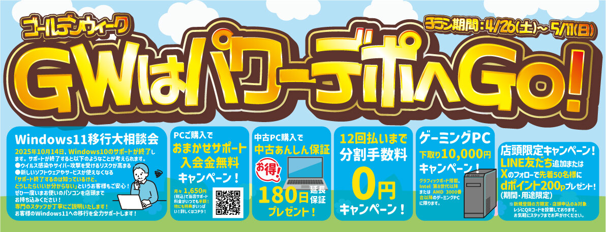 パソコンの新規ご購入、買い替えをご検討中の方はこの機会をどうぞご利用ください。