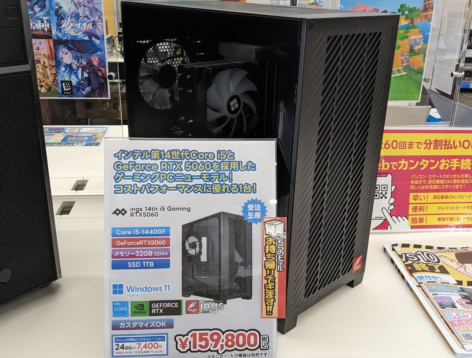 14世代のCore i5と先月発売開始の新グラフィックボード「GeForce RTX 5060」を搭載する当店オリジナルPC「ings」です。